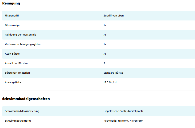 - Ideale Poolgröße: bis zu 15 m