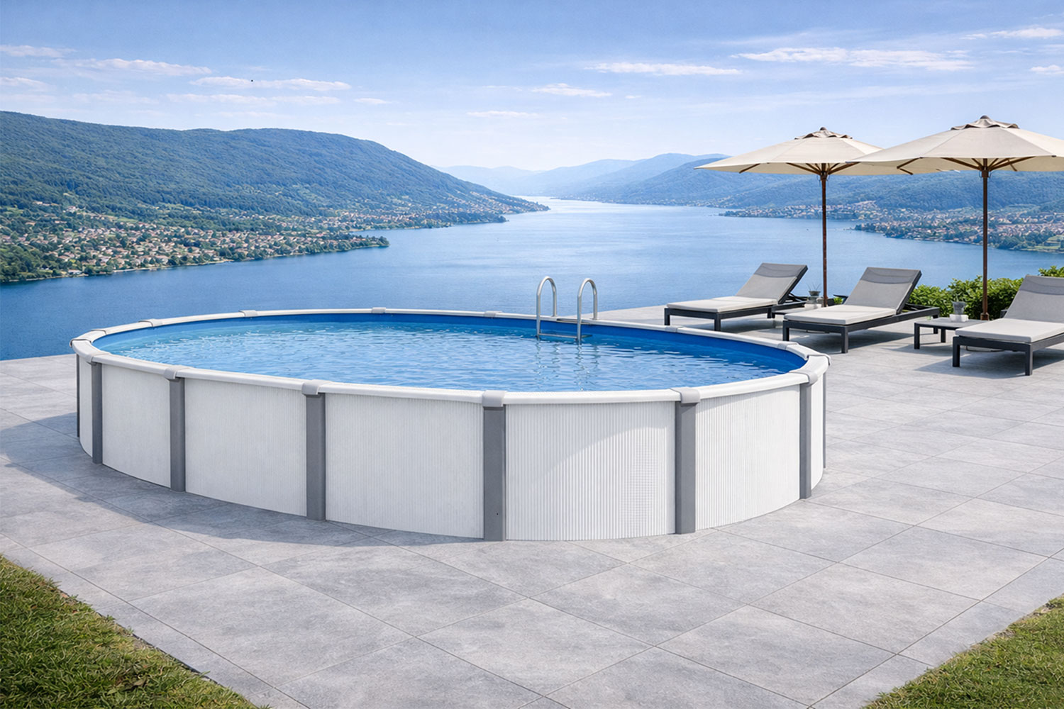 Stahlwandpool Set oval DESIGN weiß-grau PREMIUM