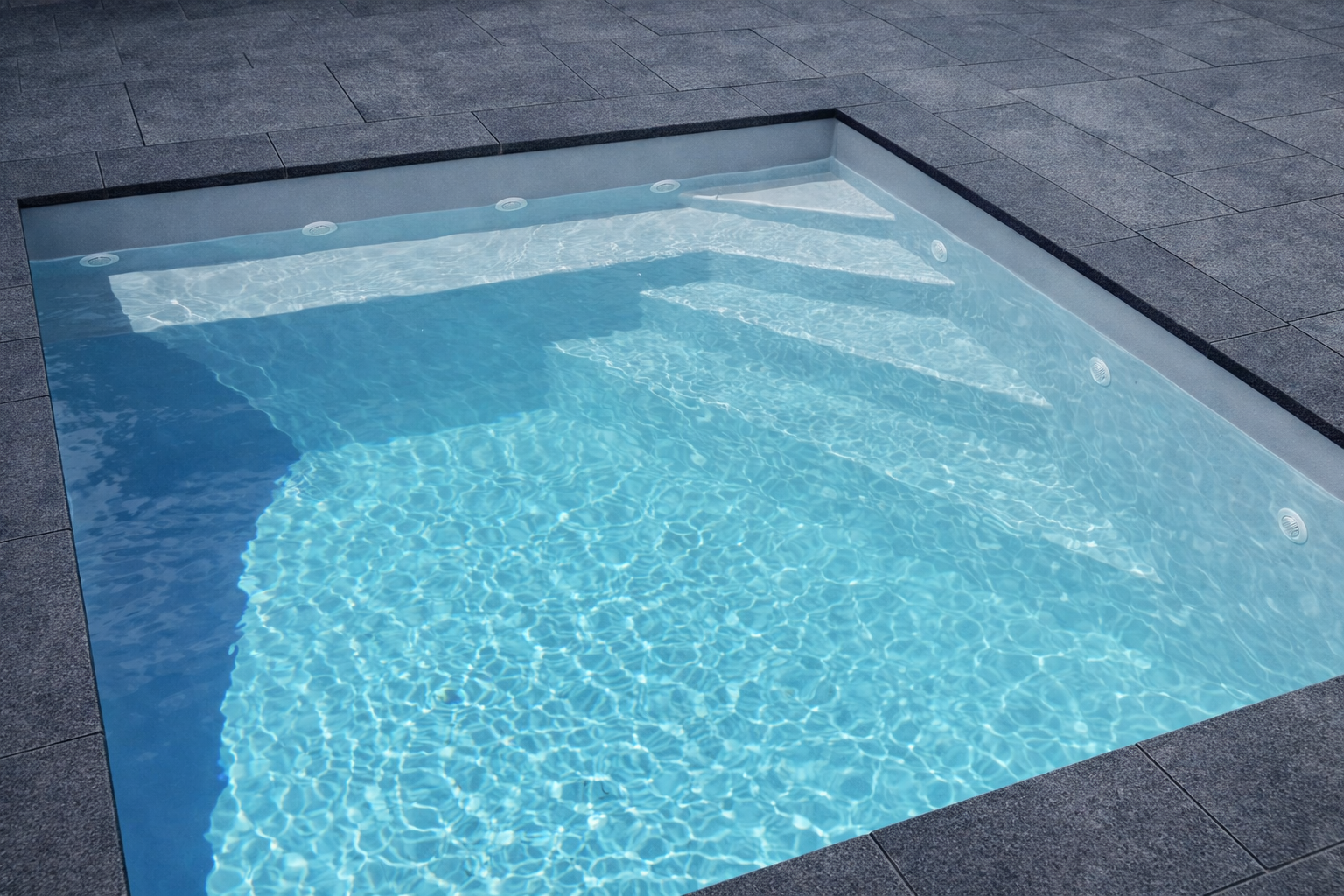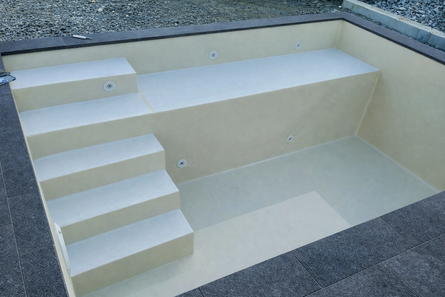 Einbauteile wie Skimmer, Einlaufdüsen, Gegenstromanlagen und Unterwasserscheinwerfer können passend genau und mühelos eingebaut werden.