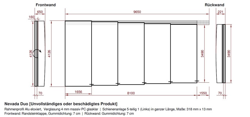 Preis sind inklusive Transport außer Tirol und Vorarlberg (gegen Aufpreis € 500,-) & 1,55 Meter Laufschienenverlängerung einseitg links.