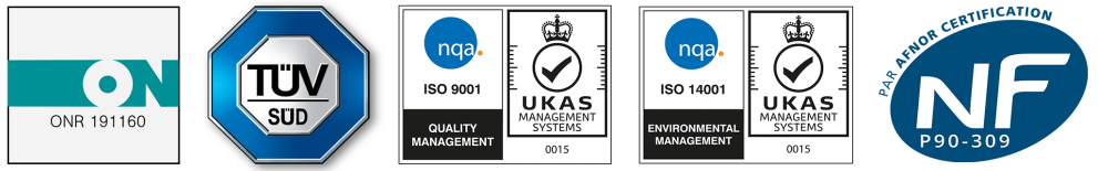 Wir sind der Qualität verpflichtet, deshalb werden unsere Produkte nach den Normen ONR 191160, EN 1090-2, ISO 9001:2015, DIN EN 1999-1-1, ISO 14001:2015 und AFNOR P90-309 hergestellt, und unser Produktionsmanagementsystem ist TÜV-zertifiziert, wodurch die Interessen unserer Kunden geschützt werden.