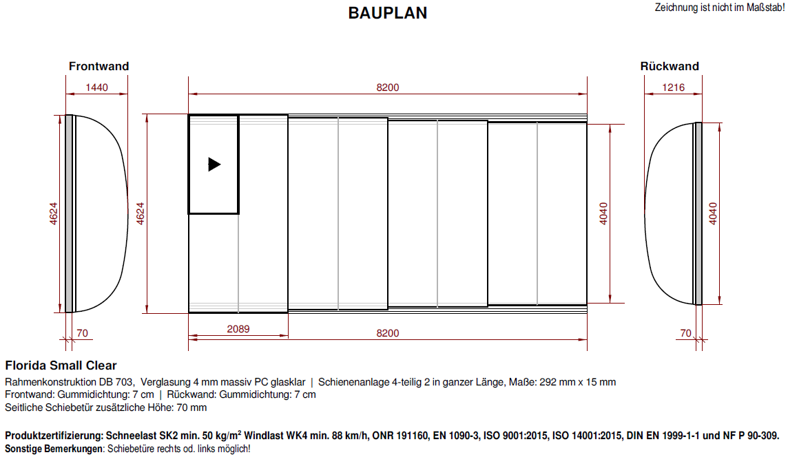 Preview: Poolüberdachung Florida small, hohe Ausführung