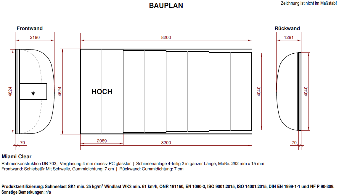 Preis inklusive Transport, außer Tirol und Vorarlberg (gegen Aufpreis € 500,00) und 2 Meter Laufschienenverlängerung einseitg oder beidseitig