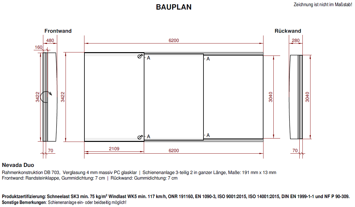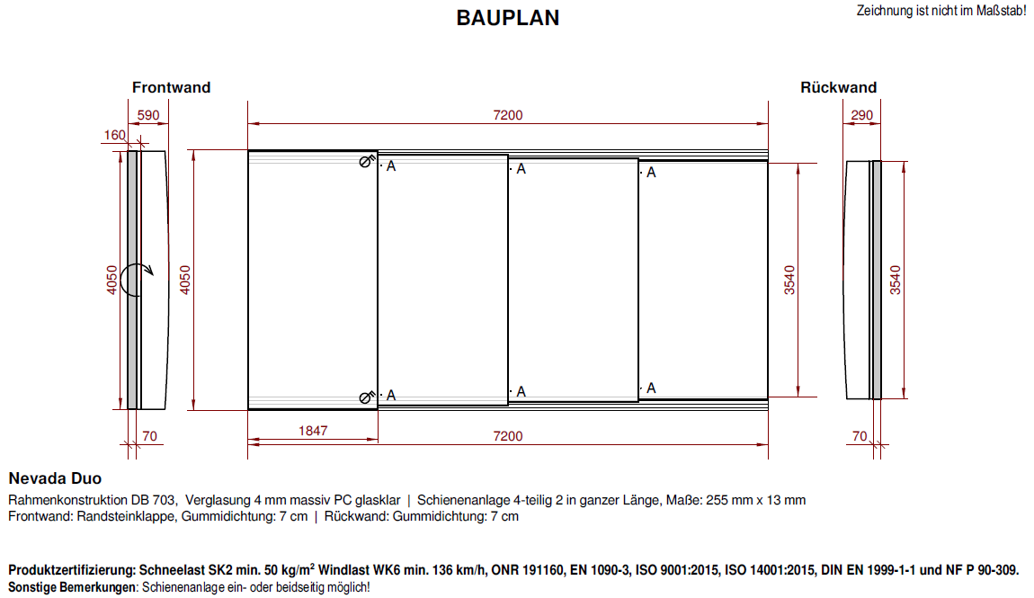Preis inklusive Transport, außer Tirol und Vorarlberg (gegen Aufpreis € 500,00) und 2 Meter Laufschienenverlängerung einseitg oder beidseitig