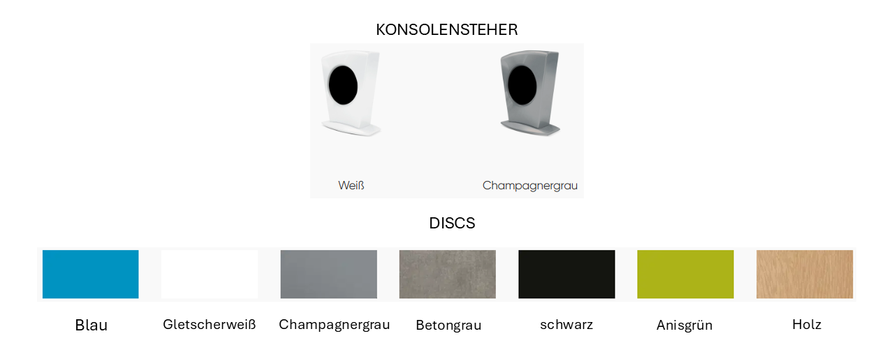 Zudem können Sie die zentrale farbige Scheibe in den stilvollen Varianten Holzdesign, Schwarz, Blau oder Grau wählen.