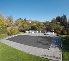 Die Rollabdeckung FLEX ist in den Farben Blau, Sand, Anthrazit und Grau erhältlich und wird inklusive einer Antriebskurbel geliefert. Diese Abdeckung ist nicht für den Winterbetrieb geeignet.
